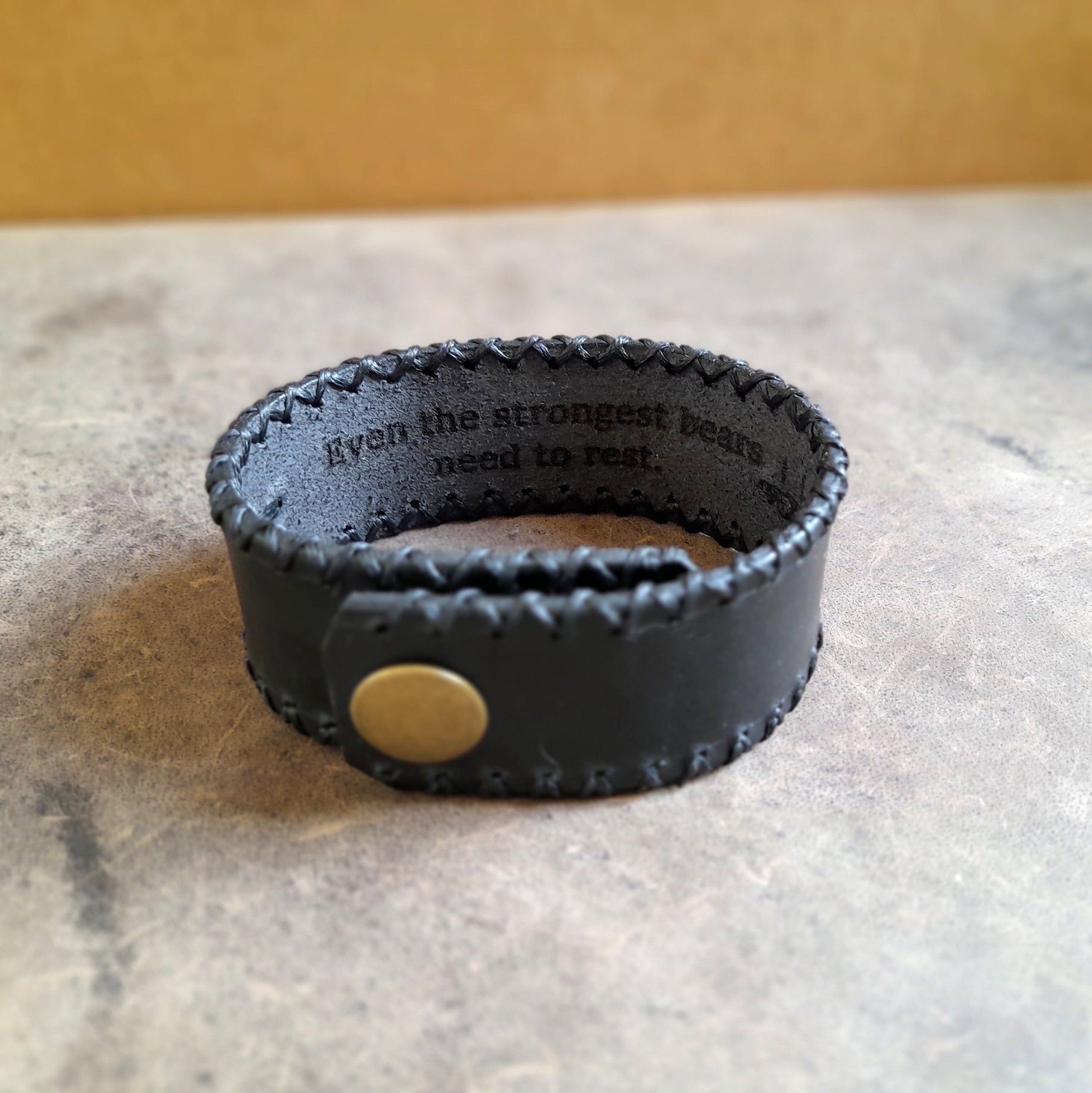 Bear Leather Cuff for Men, Spirit Animal Bracelet