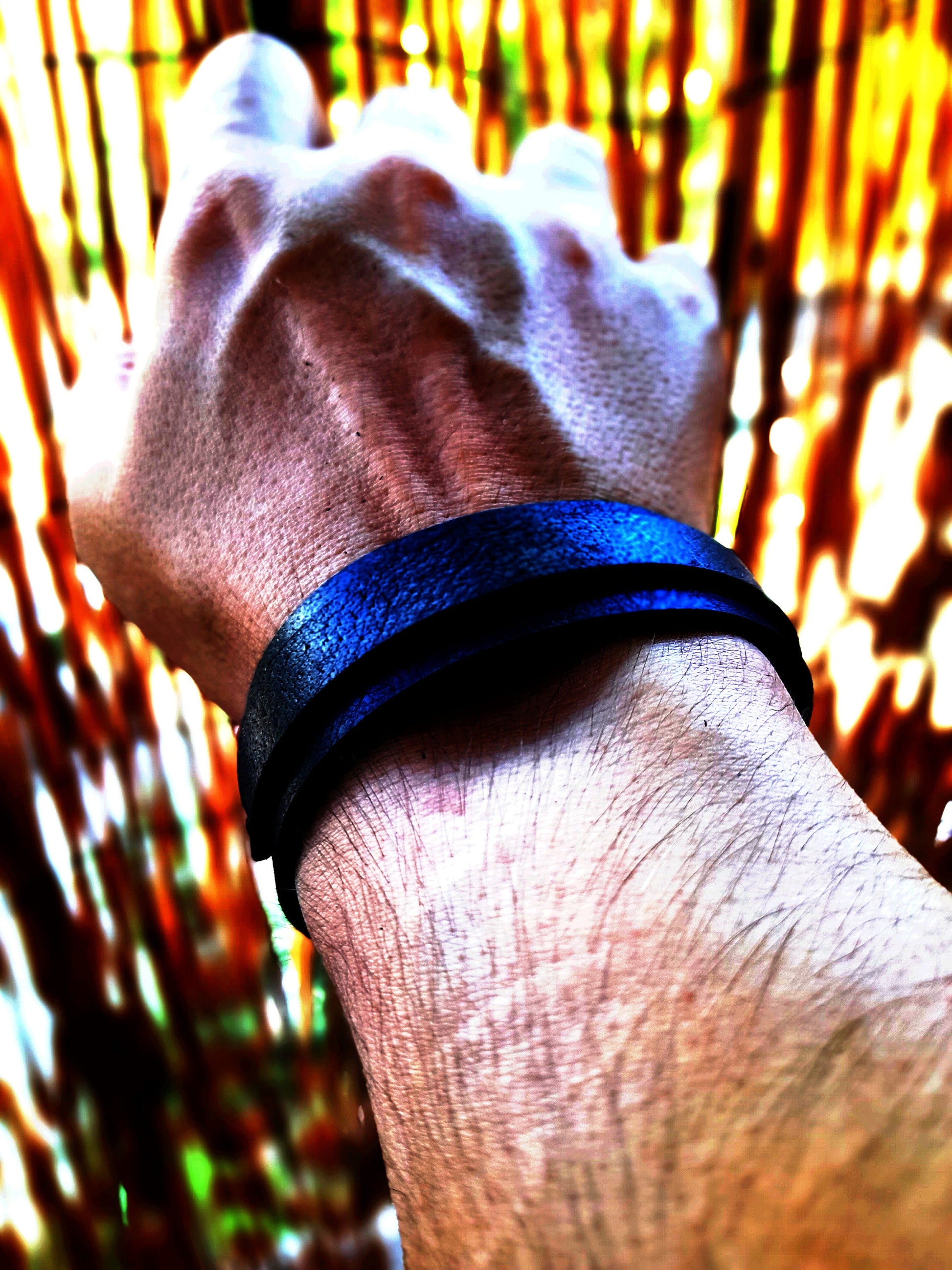 This is a beautiful, trendy, simple, modern and unisex total black leather bracelet for both Men And Women. Made of two pieces of full grain leather in jet black and a layering style, it's dainty, elegant, soft, stylish and with the most comfortable fit. You can personalize it on the inside for FREE with your best life motto and treat yourself a sturdy, everyday bracelet to complete your outfits, or offer it as a gift to any recipient and for every occasion.